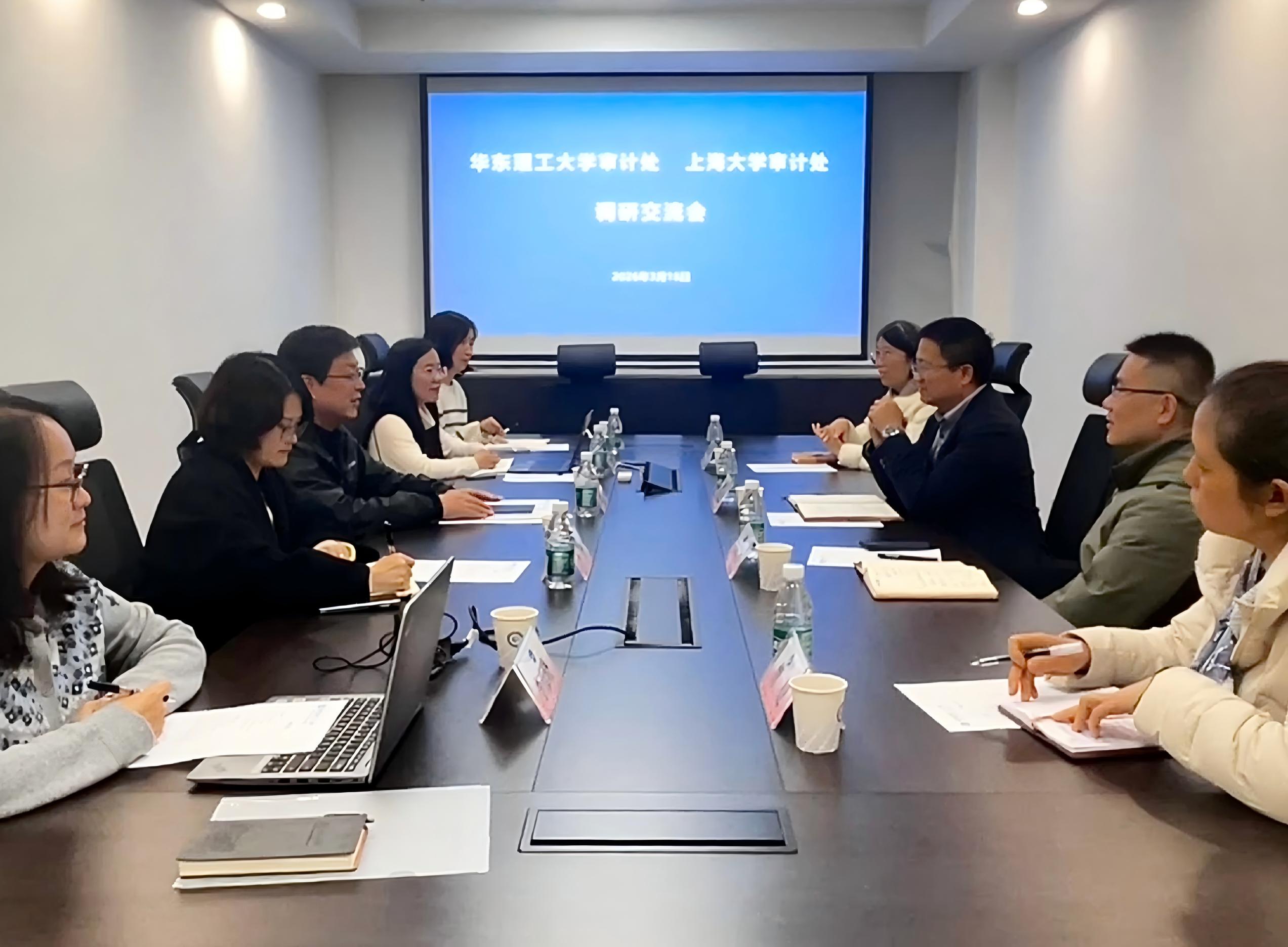 3月18日,上海大学审计处处长王志良、副处长吕怀立一行来校,就建设工程管理审计和信息化建设工作进行专题调研。我校审计处处长高乐出席座谈交流会。